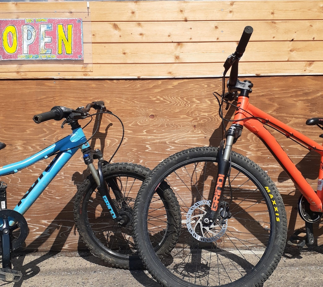 MTBパークでダウンヒルができる本格的なマウンテンバイクをレンタルしています。ヘルメットやプロテクター等のアクセサリー類もあるので、初めて・手ぶらでもOK。キッズバイク、街乗り用自転車、電動自転車のレンタルもあります。
